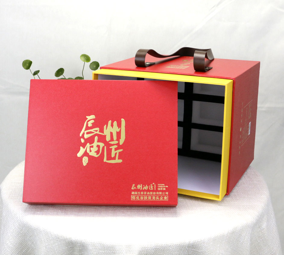 【使用范围】:“辰州油匠”茶油礼盒包装盒型为天地盖盒,适用于茶油包装盒,月饼包装礼盒,茶叶包装礼盒定制,产品包装礼盒等