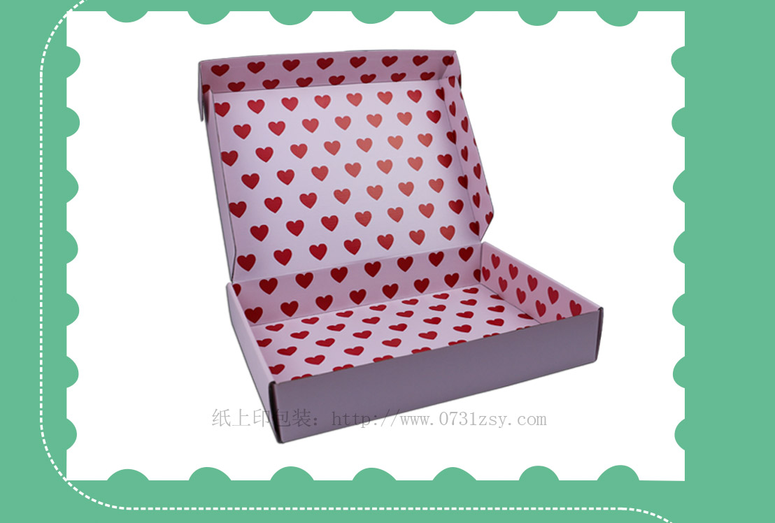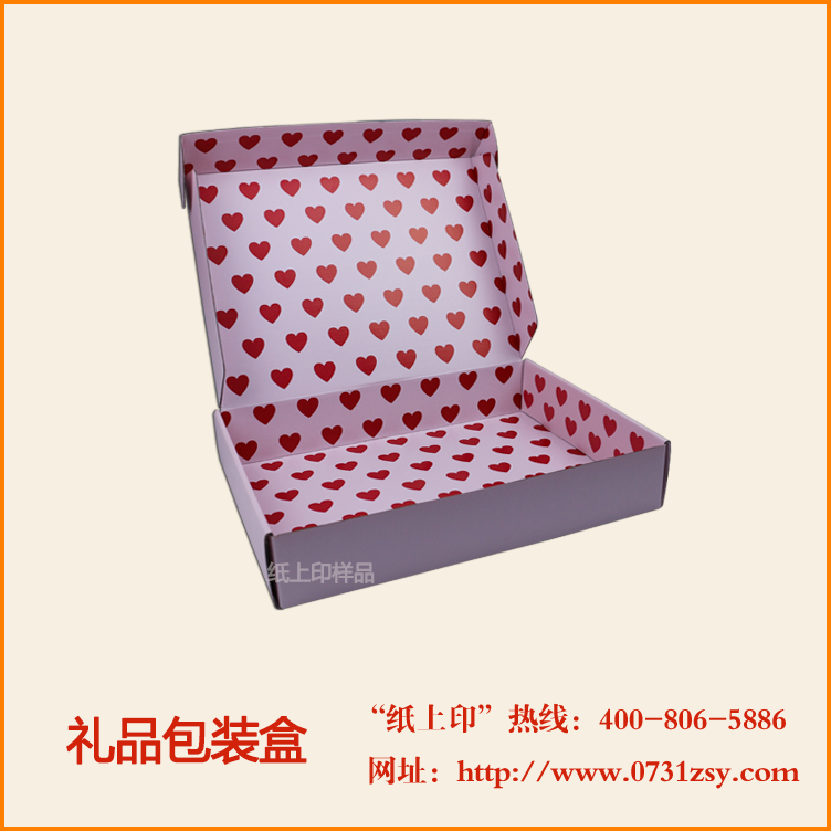 此款礼盒盒型为飞机盒,选用白板纸裱三层瓦楞制作而成,底色运用虏获一切女性心的浅粉色,盒面烫的黄金更显高档,内盒大面积的红心印刷做礼品盒再合适不过,此款礼品盒材质同样也适用于食品包装盒,特产包装盒,各种产品包装盒等,礼品包装厂家毅丰包装厂免费设计,1~2天定稿,免费热线:400-806-5886