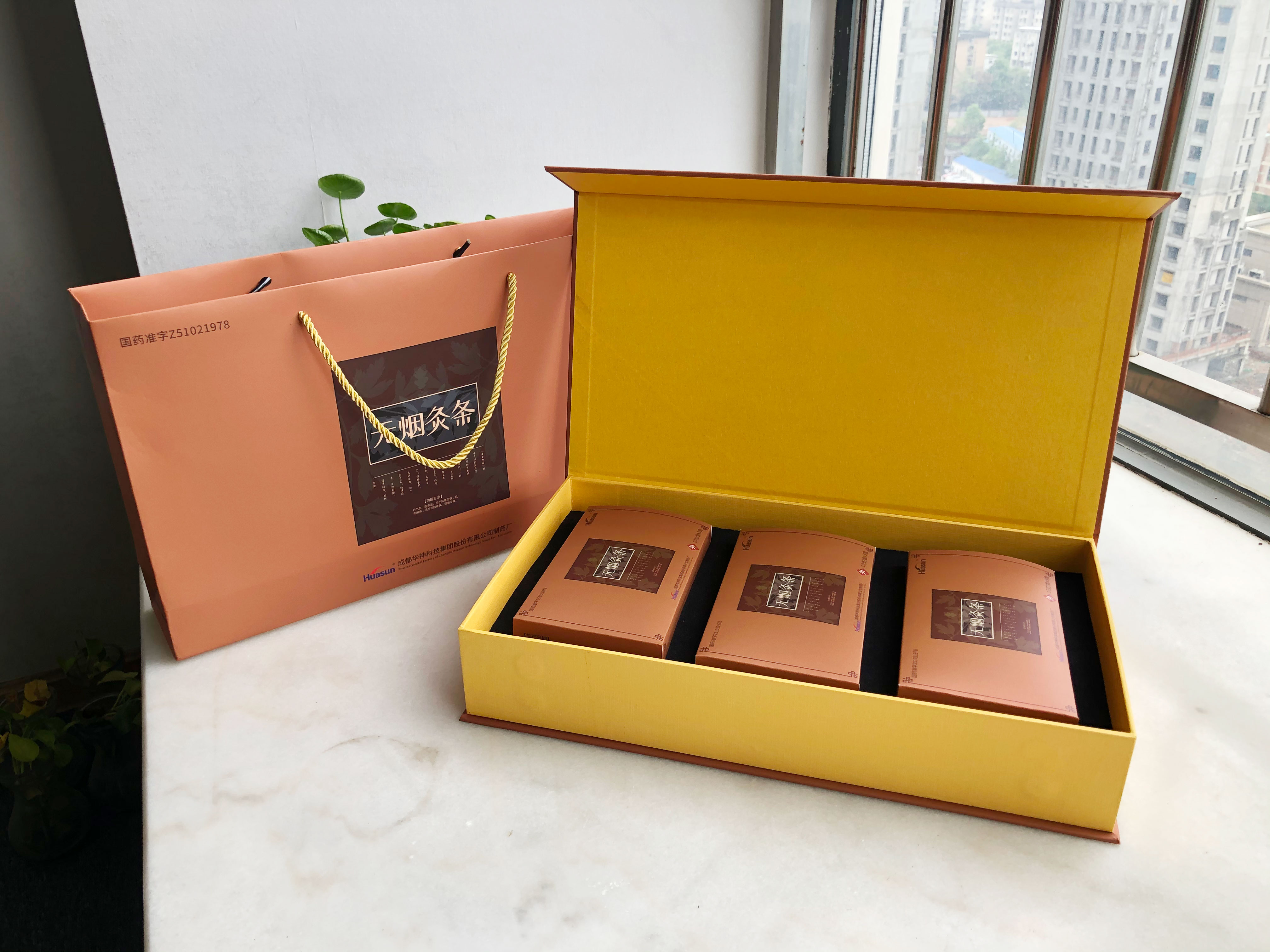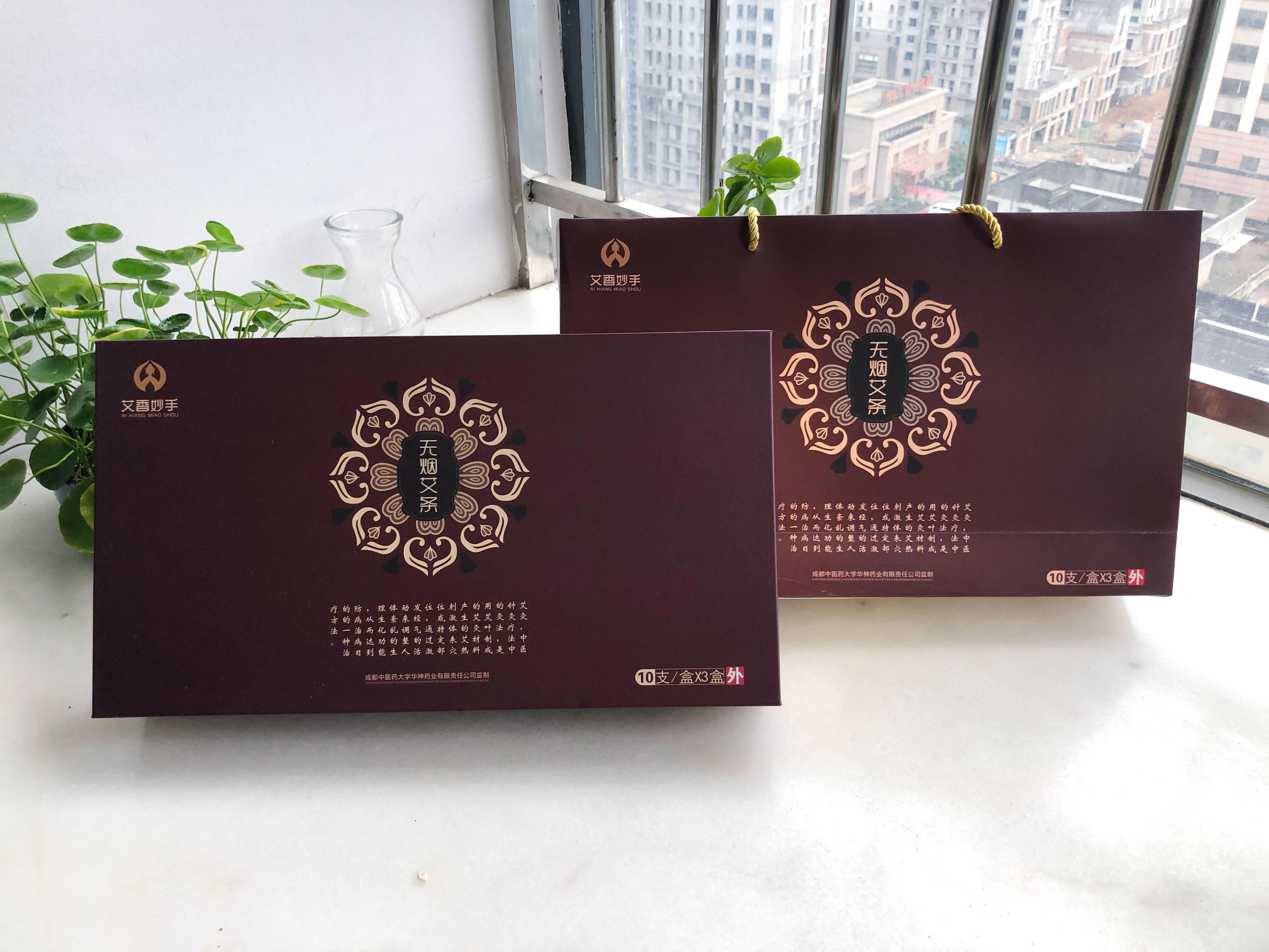 艾灸,中医针灸疗法中的灸法,是用艾叶制成的艾灸材料产生的艾热刺激体表穴位或特定部位,通过激发经气的活动来调整人体紊乱的生理生化功能,从而达到防病治病目的的一种治疗方法。无烟艾条包装盒礼盒由长沙包装盒厂家毅丰包装制作,大货已生产完毕物流装箱准备发货。
