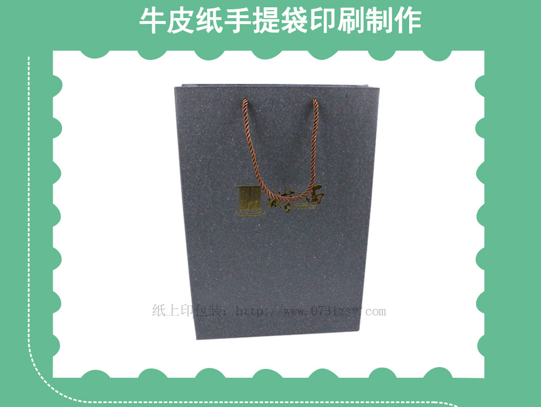 长沙纸袋印刷制作毅丰印刷厂专注手提袋、纸袋、礼品袋、牛皮纸袋印刷22年,是一家集设计,打样,印刷制作,包运为一体的大型印刷厂家.此款牛皮纸手提袋,精选250克牛皮纸采用烫黄金工艺制作而成,材质广泛应用于:茶叶包装礼品袋,食品包装礼品袋,土特产包装礼品袋等。