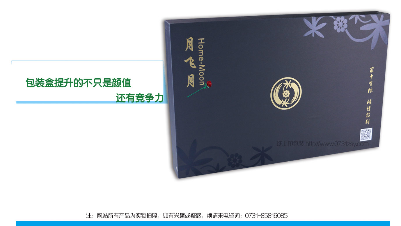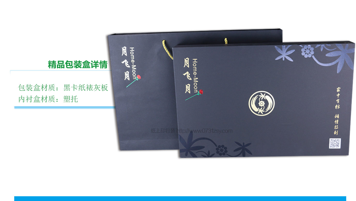 长沙国合湘汕实业有限公司成立于2001年2月,注册资金1275.7万元,公司主要从事纺织品、粮油的进出口贸易业务。“家中有粮”品牌由长沙国合湘汕实业有限公司2016年1月注册成功,公司于2014年在柬埔寨投资200万美元成立全资子公司,主要从事柬埔寨茉莉香米的生产与加工、进口等相关工作。该公司与包装厂家长沙毅丰合作多年,今年特推出“月飞月”中秋礼盒,此款月饼包装盒为天地盖盒,外盒材质选用黑卡纸裱灰板,简单的设计,UV和烫金的工艺更能显出礼盒的精美。高颜值包装盒助力产品高销量!月饼礼盒包装定制500起印,长沙市区免费送货上门,24小时咨询热线:4008065886。
