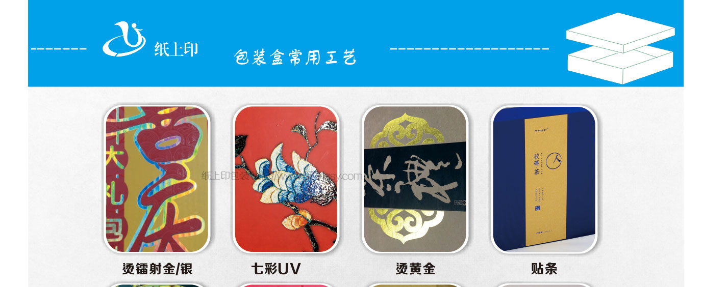 万彩网【包装工艺】:UV、烫绿金、烫红金