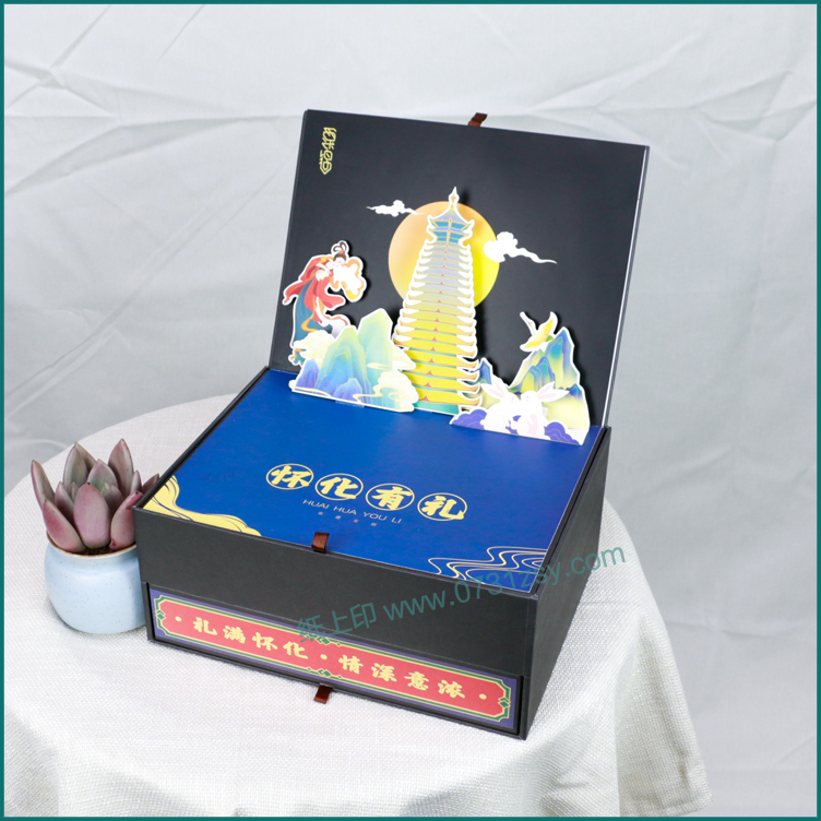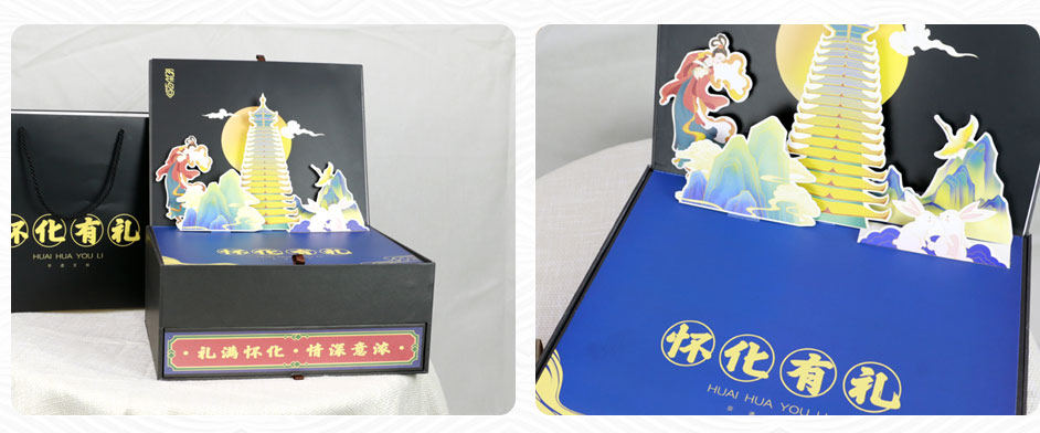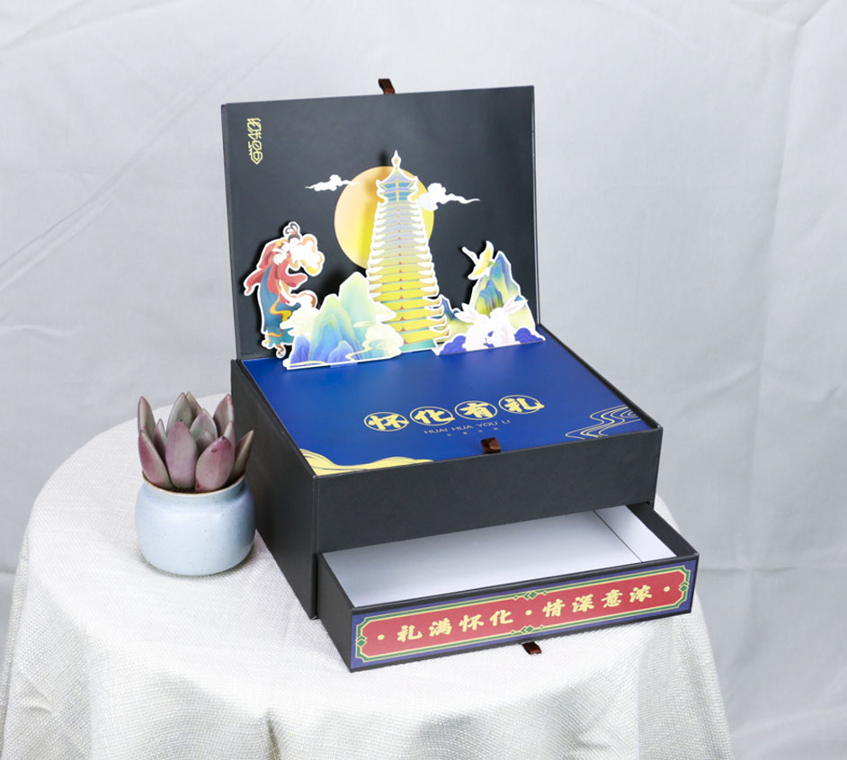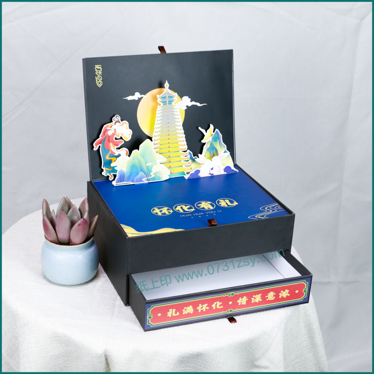 近几年文创这个词频繁出现,文创产品是一种精神内涵加艺术表现形式,文创创造出来的产品当然是售卖,那么既然有产品就涉及到产品的一个包装,长沙包装印刷厂毅丰包装在不断创新中也出品过一些文创产品的包装盒,这款文创产品月饼礼盒包装就是其中之一,翻盖抽屉盒的盒型加立体卡的呈现方式让人眼前一亮,也广泛适用于:茶叶包装礼盒,保健品包装盒,化妆品礼盒,食品包装礼盒,产品包装礼盒等