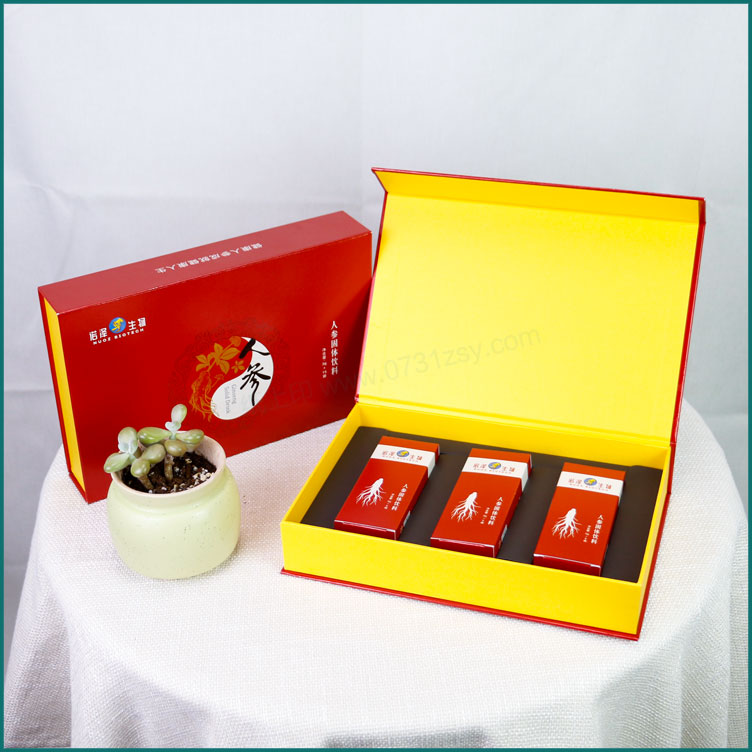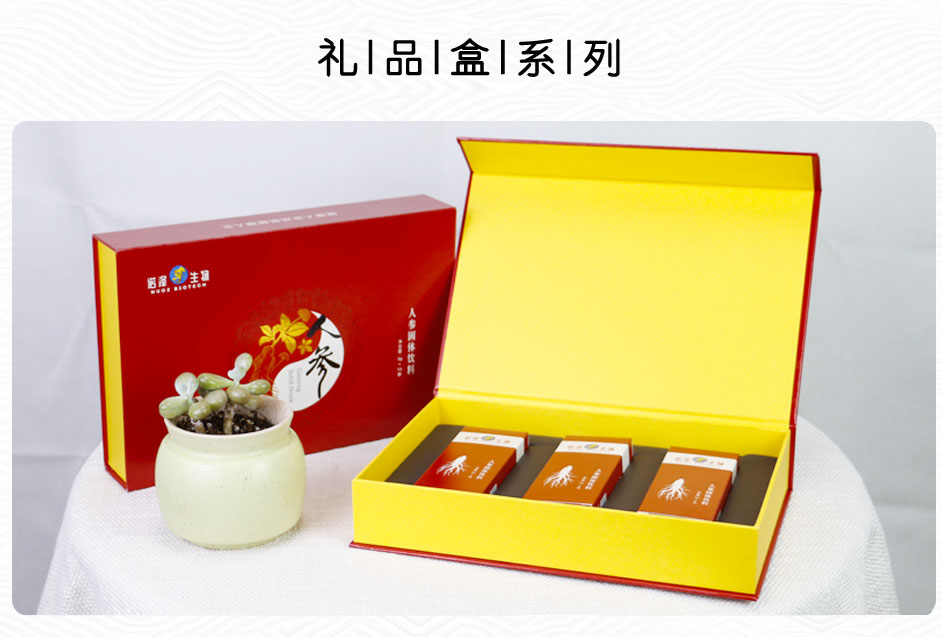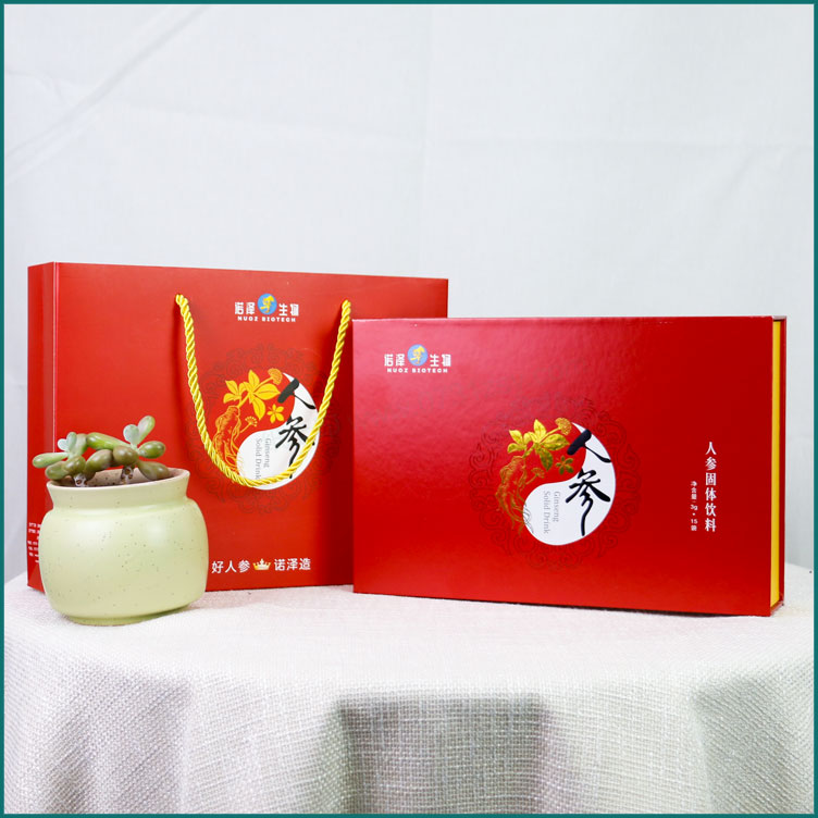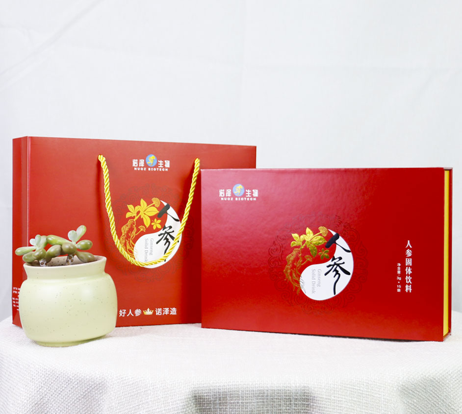 【使用范围】:诺泽生物科技人参固体饮料包装盒盒型为书型盒,广泛适用于医疗保健品包装盒,茶叶包装盒,茶油包装盒,化妆品包装盒等,长沙保健品礼盒包装厂,专版定制,热线:177-6366-7656